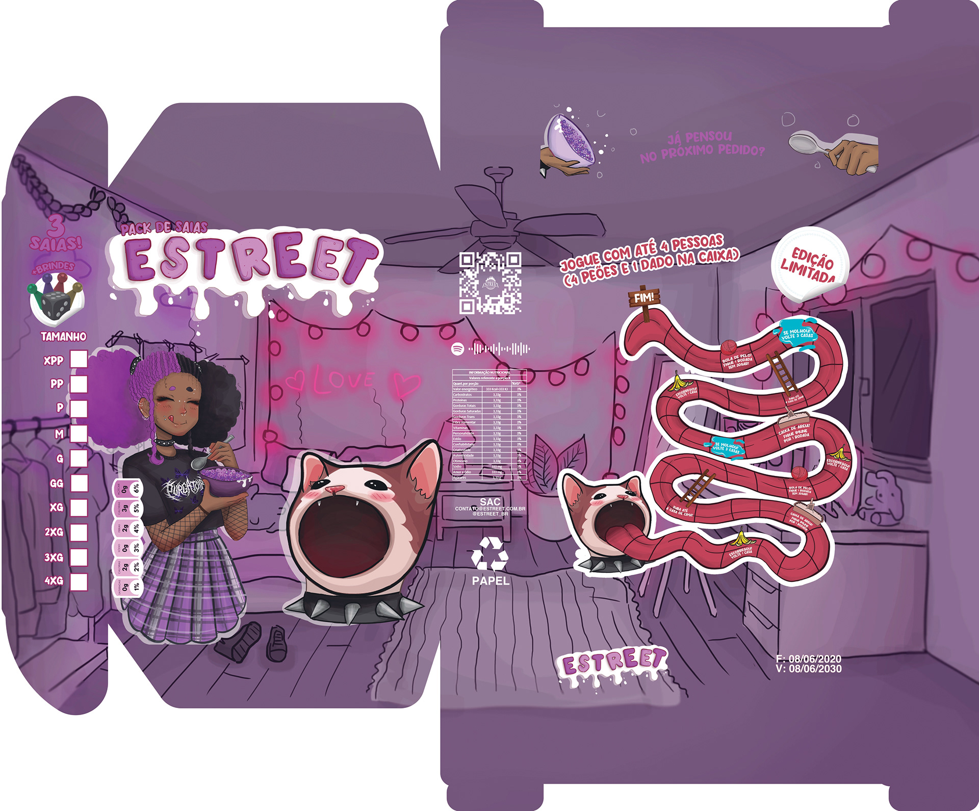 A CAIXA DE CEREAL DA ESTREET FEZ PARTE DE UMA CAMPANHA PROMOCIONAL NA QUAL FUI RESPONSÁVEL PELA IDEIA E DESIGN GRÁFICO. A ILUSTRAÇÃO FOI FEITA PELA NOSSA ILUSTRADORA.